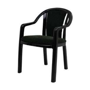 Lacquer Finish Synthetic Resin Chair with Arms with Moulded PU Cushions & Velvet Upholstery. Ergonomically Designed for Back Comfort.